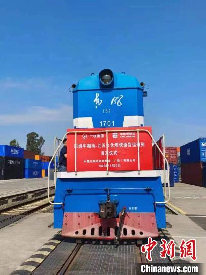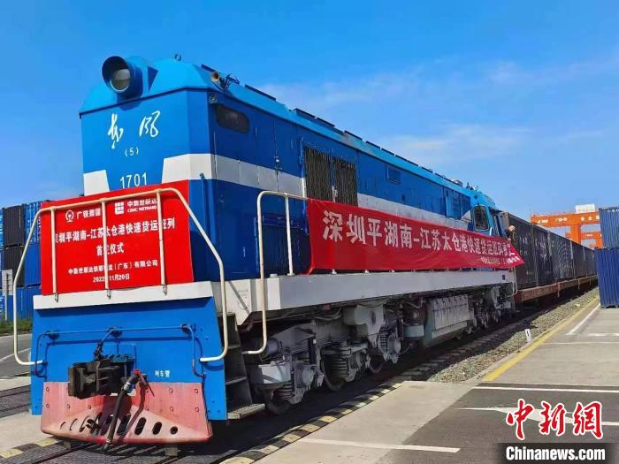 中新网广州11月20日电 (郭军 韩逸 黎磊)11月20日12时许,伴随一声汽笛长鸣,搭载着食品饮料、牙膏等民生物资的“平湖南-太仓港”快速货运班列从深圳平湖南铁路物流园缓缓驶出,预计2天后抵达苏州太仓港站。这是粤港澳大湾区首次开行通达苏州地区的货运班列,标志着大湾区和长三角地区又开辟了一条全新的物流通道。