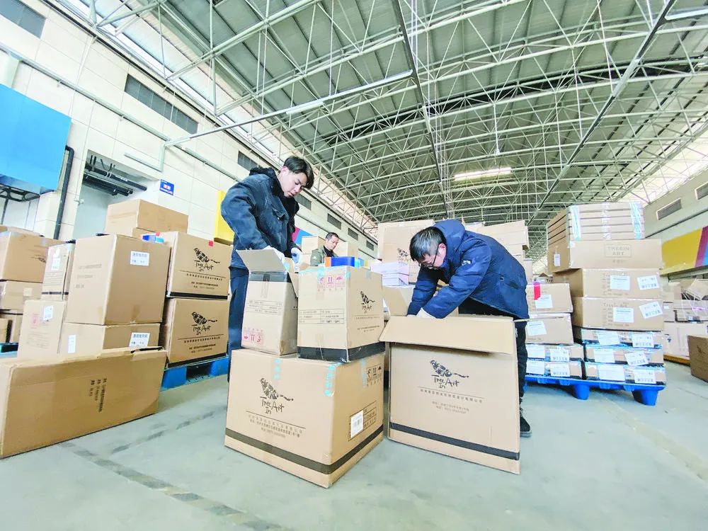 接货、收货、装货、发货……公路港的杭州青壹坊文化创意设计有限公司仓库内,堆放着来自义乌和周边县市的各类商品。仓库管理员杨德超拿着收货单介绍,从正月初八开始,公司就陆续收到很多货,6000平方米的仓库,堆满了货物,只留下了一条过道。